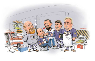 Here’s a group of guys (couple of friends of mind) that tailgate at all the Raven games that commisioned me to do. I finally got a caicature of my good friend Groovy Red on my blog (The one with the bald head, Pete.) It was fun to do and they got as big kick out of it.
