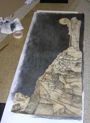 Here’s a drawing I did MANY moons ago when I was a young lad in high school. I was going through the attic and found it a couple of days ago. It’s pretty bruised and ripped up as you can see. After looking at it, it’s hard to believe I had the patience to draw all those rocks back then.